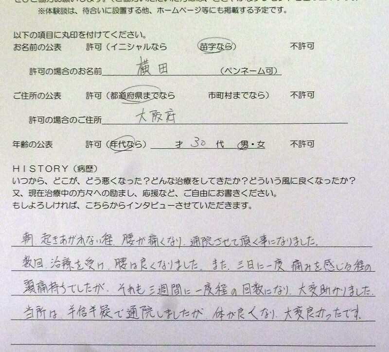 朝起きあげれない程の腰痛が改善した!【ぎっくり腰・腰痛:喜びの声No.45】