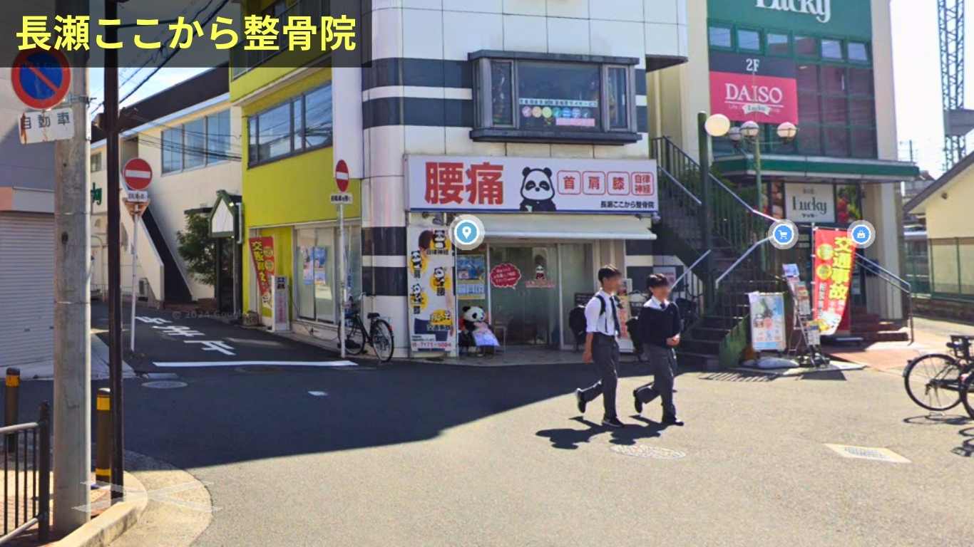 直進すると、正面に長瀬ここから整骨院が視認できます。